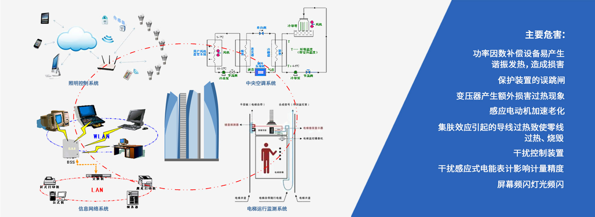 • 电梯、中央空调等变频器驱动的负载主要产生了5、7、11、13次谐波